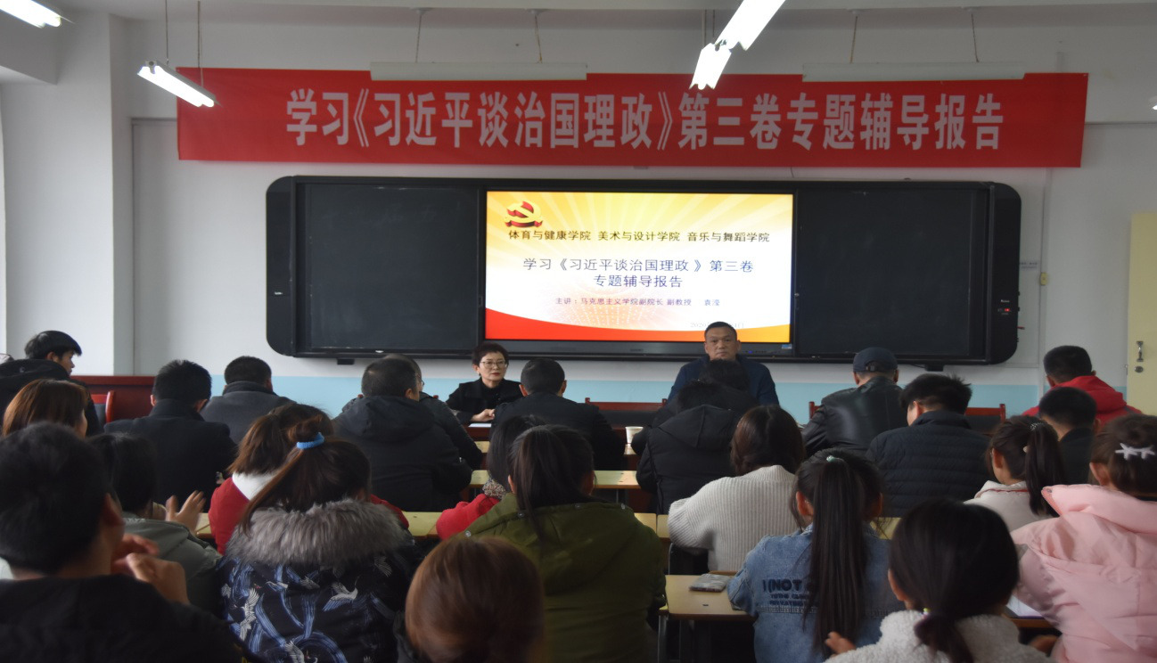 经美术与设计、体育与健康、音乐与舞蹈三公司党总支协商并报党委宣传统战部同意,11月24日下午,邀请马克思主义公司副经理袁滢副教授为音体美三院全体党员作学习《习近平谈治国理政》第三卷专题辅导报告。三个公司的领导班子、党员教师、入党积极分子、员工干部代表共计150多人参加了辅导报告会。辅导报告会由体育与健康公司党总支书记汪贵文主持。