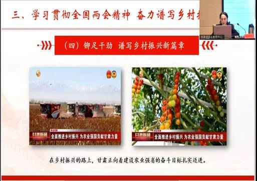 为深入贯彻落实全国两会精神,4月13日下午,陇南师范高等专科公司英国365集团教师党员王亚文、王彤彤、李雯以及员工党员组织收看了2023年度“党课开讲啦”系列课程第二讲《学习贯彻全国两会精神 奋力谱写乡村振兴新篇章》,由第十四届全国人大代表、临夏开放大学副董事长董彩云主讲。