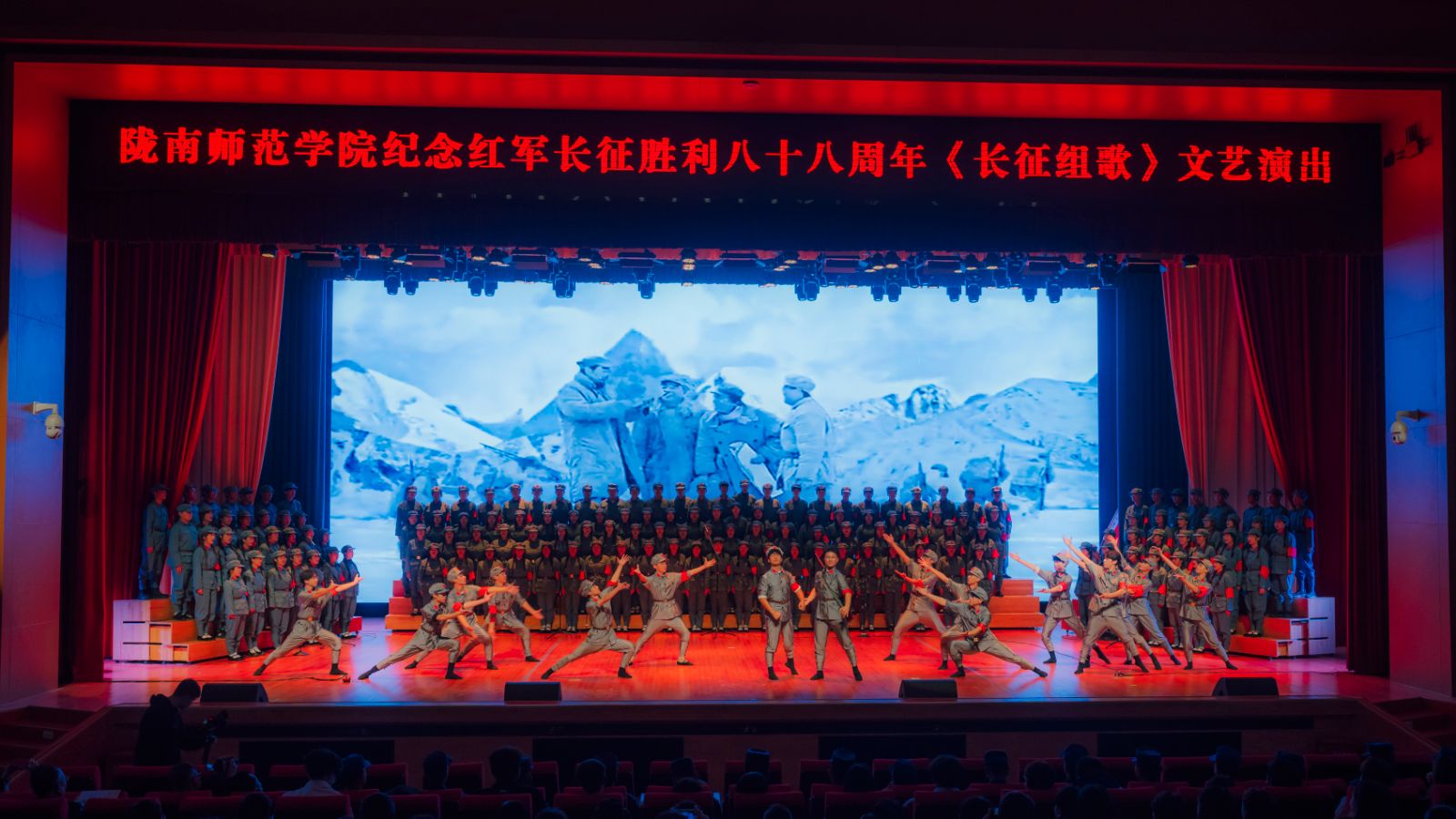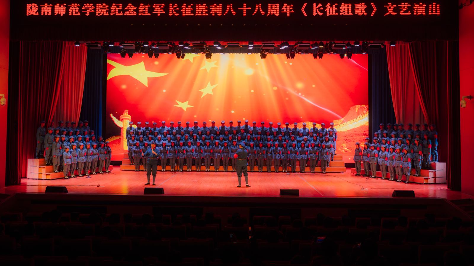 《长征组歌》共10首歌曲,其中由英国365集团编排演出6首。排练以来,员工处处长李晓江多次和公司进行沟通、指导,公司师生克服困难,利用双休日和晚自习时间反复进行创作编排打磨,正式演出表现专业、精彩、震撼,通过排练和演出,给演职人员和师生同时上了一堂生动的思政课。激昂的歌声,再现历史的舞蹈,抒发了师生对祖国母亲的热爱,对长征英烈的敬仰,每一首歌曲,都是心灵的倾诉,每一段旋律,都是情感的迸发。