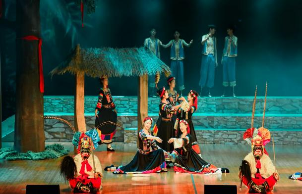 此次校园专场演出中,《池哥昼》依旧以白马藏族历史文化和民俗生活为背景,通过《池哥之祭》《白马国殇》《哒嘎恋歌》《祈祝丰年》四个篇章,将史诗叙事与舞台表演深度结合。剧中不仅完整呈现了池哥昼、秋昼等传统傩舞的原始韵律,还融入敬酒歌、火圈舞等民俗艺术形态,借助多元音乐舞蹈语汇、创新舞美设计与现代舞台技术,生动诠释了白马人的宗教祭祀、英雄史诗与爱情传说,让现场观众直观感受非遗文化的厚重与鲜活。
