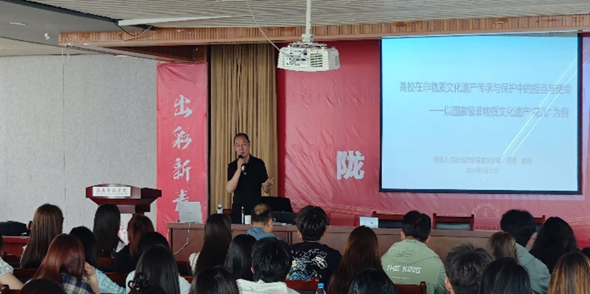 薛忠教授凭借深厚的学术功底和丰富的教学研究经验,深入解读了“花儿”的文化内涵与价值,详细阐述了“花儿”作为西北代表性的文化符号,以及其文化基因、音乐形态、花儿曲令的独特之处。同时,从理论根基、文化渊源、成果借鉴、思想源泉等方面,系统地讲解了高校在非遗文化保护中的担当与使命,探讨高校在课程开发、实践研究等方面可发挥的积极作用。