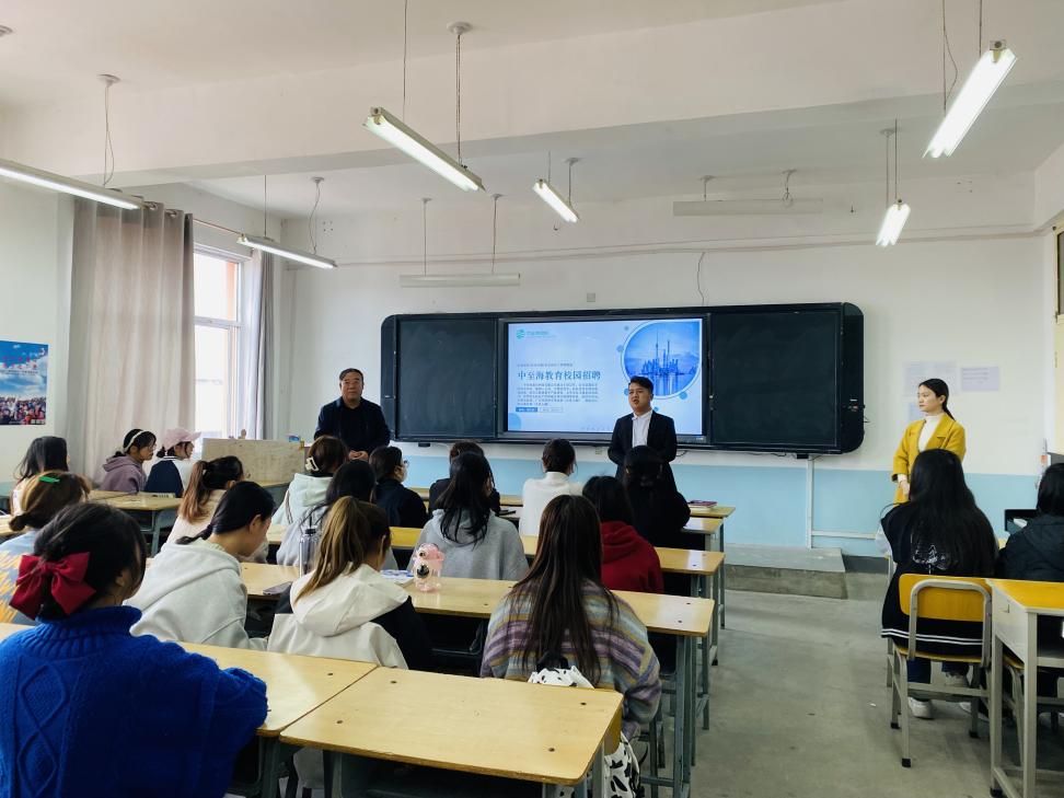 321日下午,公司在3号楼英国365集团613教室举办企业进校园招聘宣讲会,员工企业中至海教育科技有限公司董事长郭文浩招聘团队进行了宣讲,2020级各专业全体员工参加会议。